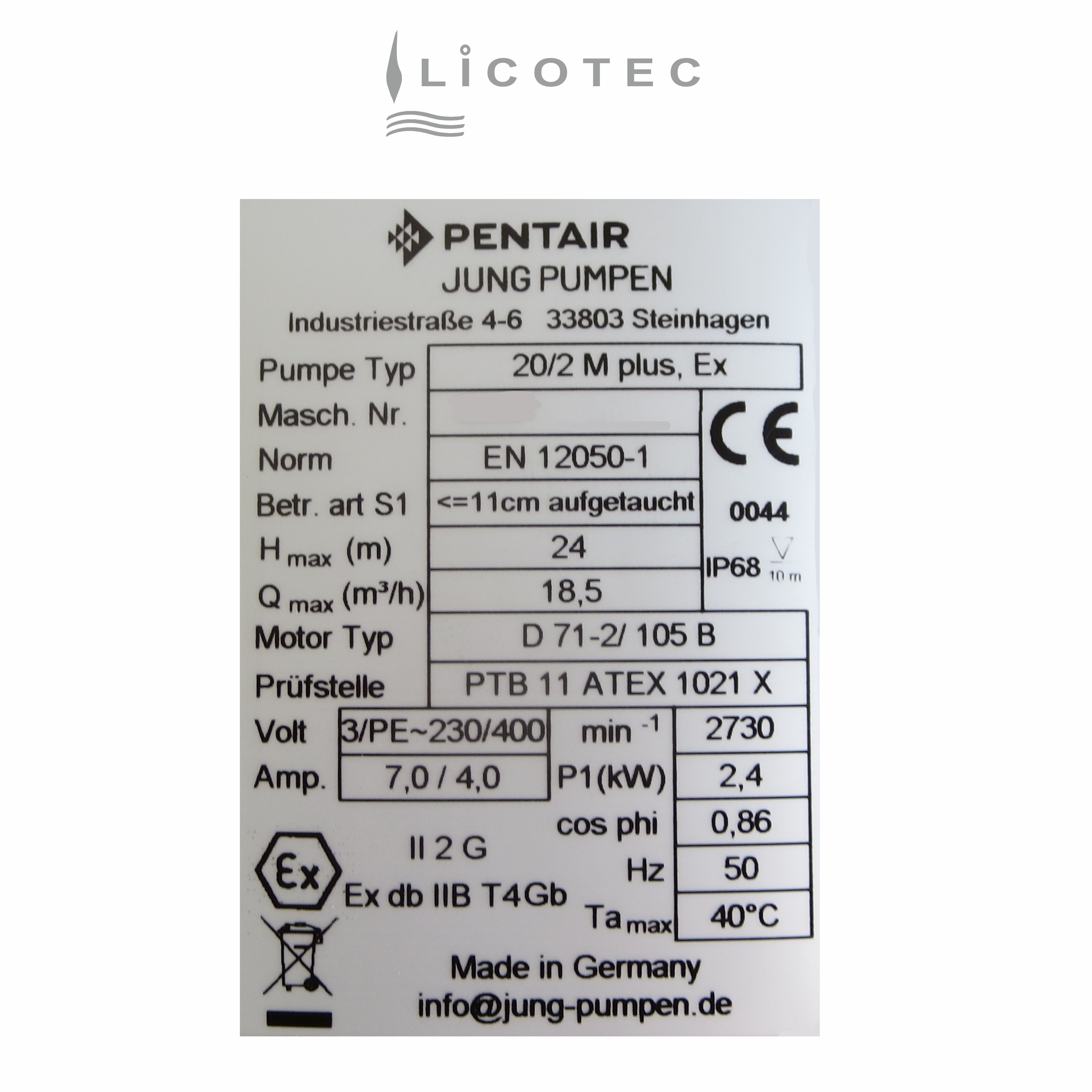 Technische Daten Pumpe
